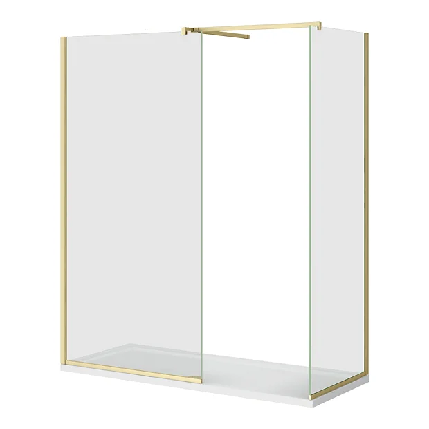 Arezzo Brushed Brass 10mm Glass 1700 x 700 Wet Room (inc. Screen, Side Panel + Tray)