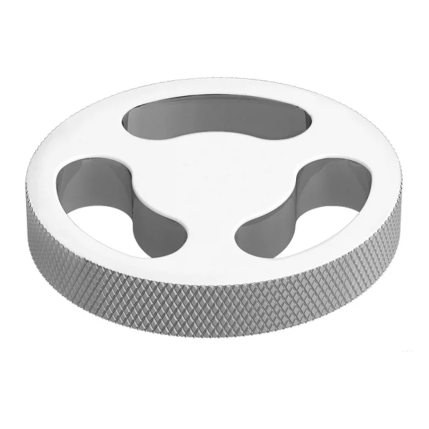 Circular handles with a tactile knurled grips