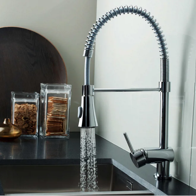 Make washing up a breeze with the Benissa Modern Kitchen Tap. You can use it like a regular kitchen tap or pull out the handy rinser spout spray to speed up cooking and cleaning. Fitted with a rainfall-style flow, it helps give a nice, even rinse. A side mounted lever handle easily controls temperature and water pressure. With a shiny chrome finish, this minimalist design makes for a truly modern kitchen tap.