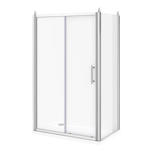 The beautifully crafted Chatsworth sliding shower door enclosure, featuring 6mm toughened safety glass with classic ball headers on the top of the frame posts and a elegant traditional style door handle. Supplied with a quality 40mm high white acrylic capped shower tray, constructed from a polyurethane resin mixed with filler including volcanic ash. If you are looking for a stylish designer look in your bathroom then our Chatsworth traditional shower enclosure range is the perfect choice.