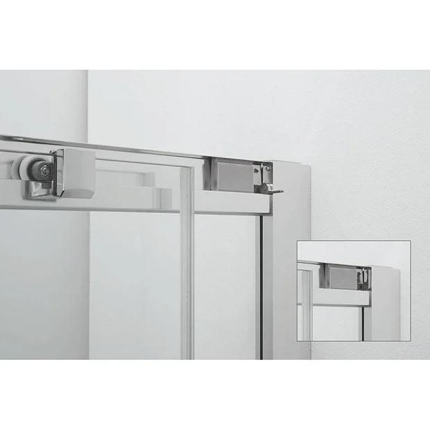 The Clear 6 Quadrant Double Door Shower Enclosure features a double door design mounted on quick release double rollers, silver anodised aluminium finish and concealed fixings and profile cover caps. It’s click and lock quick-fit installation system dramatically reducing installation time while the glass is treated with Crosswater Clear to help it easy to clean.