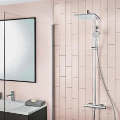 This sleek Thermostatic Bar Shower Valve from Cruze features two simple to use controls – one for flow and one for temperature. Thanks to its clever anti-scald technology, you can rest assured the water will never exceed an optimal 38°C. The shower mixer bar is constructed from solid brass with a chrome finish. Why not tie this modern look together with some understated curved bath taps?