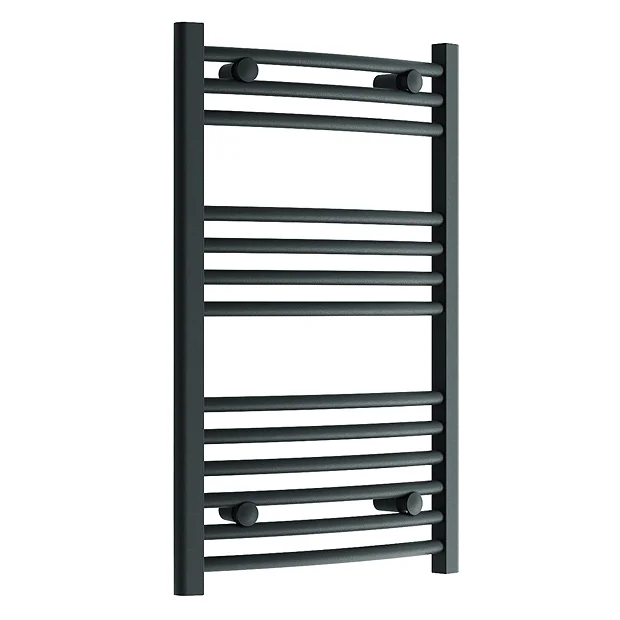 Looking for a small but powerful towel radiator? Choose this stunning Curved Anthracite Grey Heated Towel Rail to keep your bathroom toasty warm. With a width of just 500mm, this compact ladder towel radiator will leave lots of wall space free for a minimalist look – a great choice for smaller bathrooms or en-suites. Its 13 tube rails also mean you’ll have plenty of room to hang your wet towels to dry.