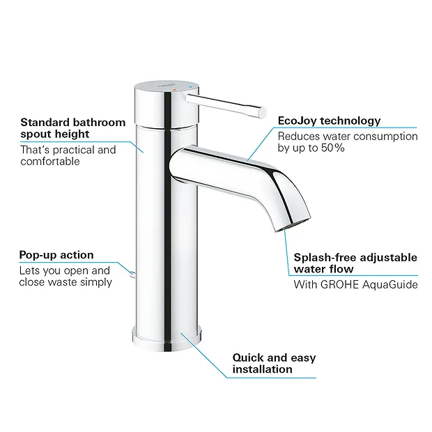 Grohe Essence S-Size Mono Basin Mixer with Pop-up Waste – Chrome – 23589001