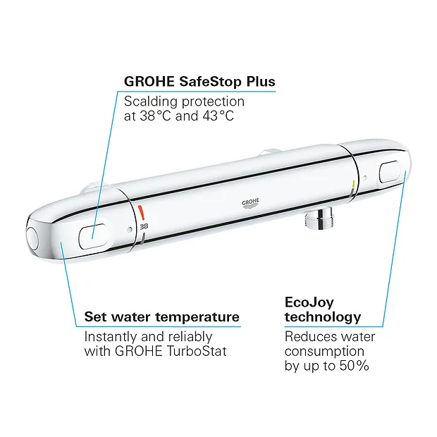 - Constant water temperature thanks to reliable GROHE TurboStat® technology
