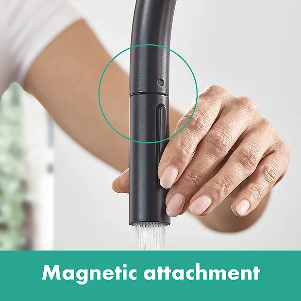 hansgrohe Talis M54 Single Lever Kitchen Mixer 210 with Pull Out Spray and sBox – Matt Black – 72801670