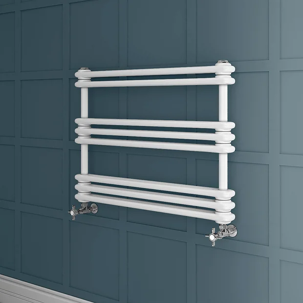 Keswick W800 x H612mm Horizontal Cast Iron Style Traditional White Towel Rail