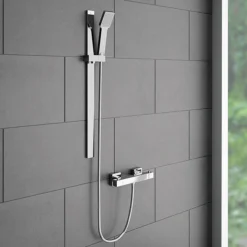 Opting for a trendy, minimalist look in your bathroom? This sleek Milan Shower Package conceals all piping for a clean, flawless appearance. It includes a showerhead, handset and faceplate and creates a contemporary presence thanks to its squared profile and clean lines. Built with style and functionality in mind, the clever thermostatic valve can be fitted vertically or horizontally while its practical shower mixer allows you to control temperature and water flow either separately or simultaneously.