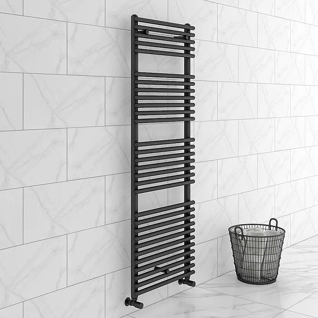 The 1500mm high heated towel rail is an excellent addition to the Monza range, featuring a classic timeless design. Manufactured from durable steel with a modern eye-catching matt black finish, this stylish round bar towel rail provides superb heat output which will gently warm towels and your bathroom or cloakroom.