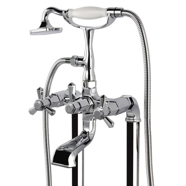 Influenced by the Art Deco era, this RAK Washington Bath Shower Mixer adds a glamorous appeal to any bathroom. Made from high quality brass, the tap is beautifully finished in polished chrome and features twin crosshead handles. Suitable for high pressure water systems only. Includes shower handset and hose.