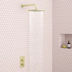 Arezzo Square Brushed Brass Push-Button Shower With Handset + 200mm Rainfall Shower Head